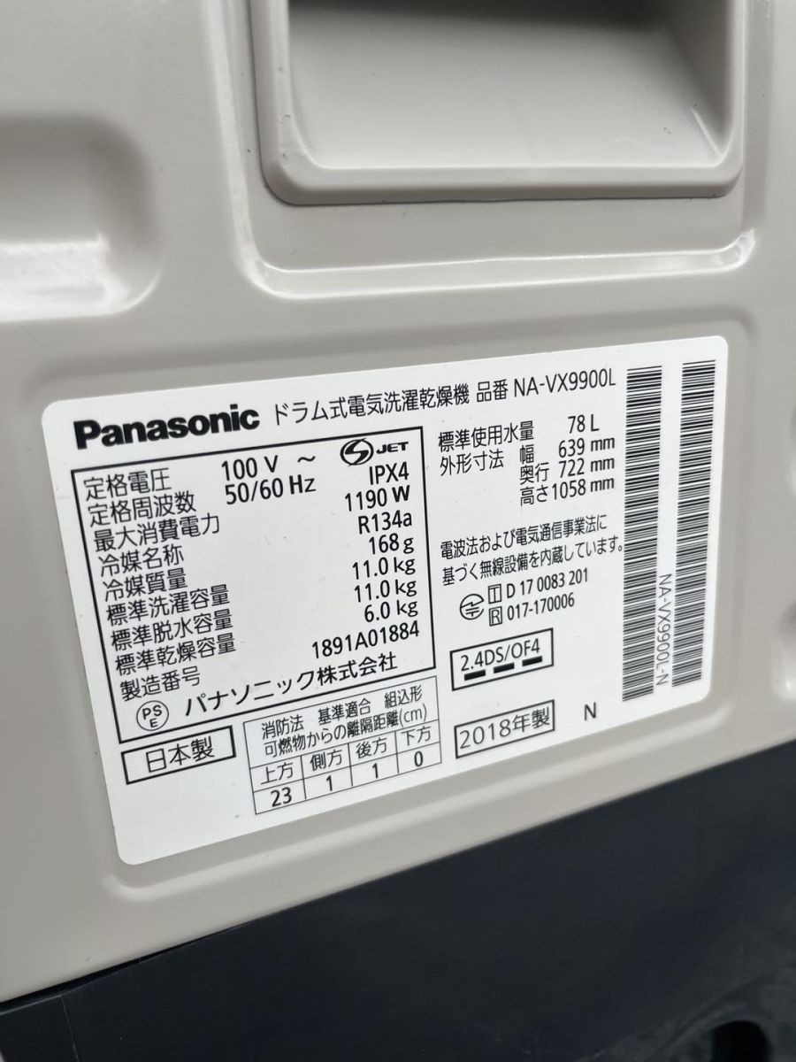 Máy giặt sấy nội địa Nhật Panasonic NA-VX9900L-N giặt 11KG Sấy 6KG date 2018 Hàng sài lướt đẹp như mới